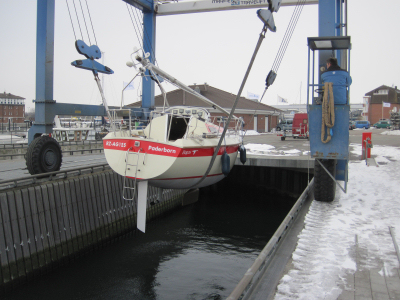 Neustadt Arcora Marina Ist alles eine wenig anders gekommen als ich wollte und es mir lieb war. Kurz vor der Abfahrt am Freitag rief der Hafenmeister, wo ich kranen wollte, an und sagte mir das zu viel Schnee liegt und kommt nicht bis zum Kranplatz. Ich wollte es trotzdem versuchen und bin los. In Hamburg musste ich vorher die NeRo abholen da diese einen neuen Kiel erhalten hatte. Dort angekommen die erste schlechte Überraschung. Auf der Nero war das gesamte Vorschiff verrostet.Die hatten den Keil nachflexen müssen und hatten nicht das Schiff abgedeckt. Totaler Dreck werde noch Tage damit beschäftigt sein das ganze zu säubern. Ich hätte das Schiff auch dort lassen können da würde alles erst in der nächsten Woche gereinigt sein. Das wollte ich natürlich nicht und nahm das Schiff mit. Dann das nächste Abenteuer. Habe versucht 10 Meter auf das Hafengelände zu kommen um zu prüfen ob ich doch noch bis zum Kranplatz vordringen kann. Zu Fuß bin ich bis zum Kranplatz gekommen und musste durch 30 cm Schnee laufen. Also den Hafen wieder verlassen. Gar nicht so einfach, erst nachdem ich die Schneeketten aufgezogen hatte kam ich langsam wieder auf die Straße, Eine Stunde geackert. Dann alle Häfen im Umkreis von 50 Km angerufen. In Neustadt hatte einen Teilerfolg. Ich sollte mich heute noch mal um 10 Uhr melden dann wäre das Bürö offen. Ich wieder auf die Autobahn bis kurz vor Neustadt auf den Rastplatz und weil es bereits stockdunkel war. Versucht zu pennen. Eine bitterkalte Nacht bei minus 14° C. und keine Heizung im Zugriff. 0630 Uhr den Rest bis in den Hafen. O700 Uhr traf ich den Hafenmeister um 1030 Uhr war die NeRo im Wasser. Dann in die Box getuckert und der nächste kleine Schock die Sicherungsschraube vom Kiel ist undicht. Ein bischen Wasser läuft rein, nachziehen der Schraub half nichts, die Muttern waren bis zum Ende des Gewindes festgeschraubt. Ursache Etap Hamburg hat 2 Unterlegscheiben vergessen. 4 Scheiben waren auf der Schraube drauf und 2 haben die Penner nur montiert, hatte aber noch 2 in meinem kleinen Lager an Bord. Und siehe da alles dicht. Etap Hamburg ist eine absolute Trümmertruppe. Nun den ganzen Tag aufgeriggt aber noch nicht fertig. Morgen geht es weiter. Bin Hundemüde. Morgen komme ich auch wieder nach Paderborn um das Zugfahrzeug mit Trailer zurück zubringen, Hier ist dafür leider kein Platz. Der Plan ist das ich Dienstag mit dem Zug wieder hier hin kommen und Mittwoch den Törn starte, laut den Wetterbericht von Andreas die bester Entscheidung. Daten des Tages |