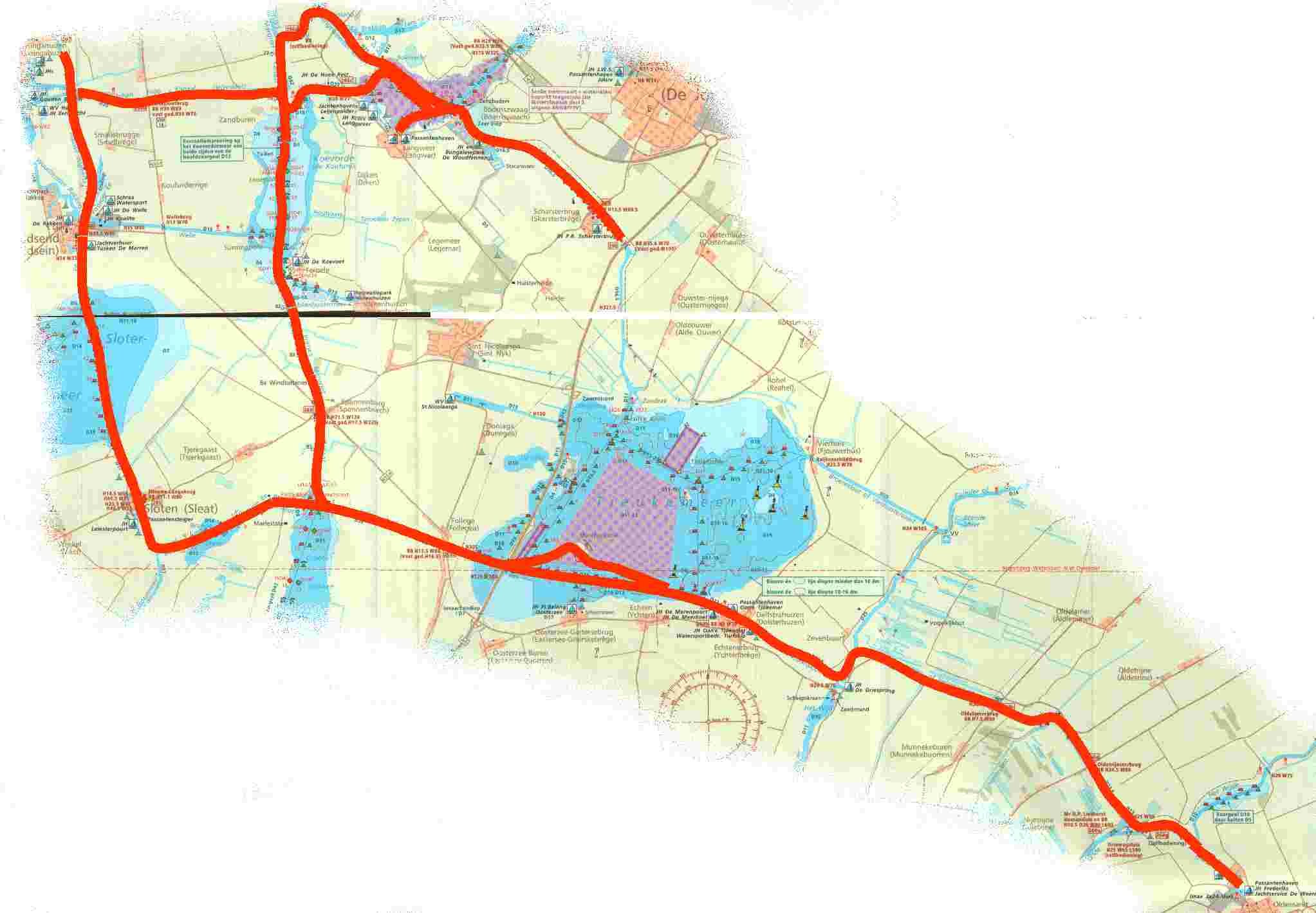 | angelaufene Häfen | Echtenerbrug, Woudsend, Scharsterbrug und Oldemark |