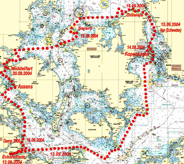 | angelaufene Häfen | Kopenhagen, Ven, Gilleleje, Sejerö, Middelfart, Assens, Damp2000 |
