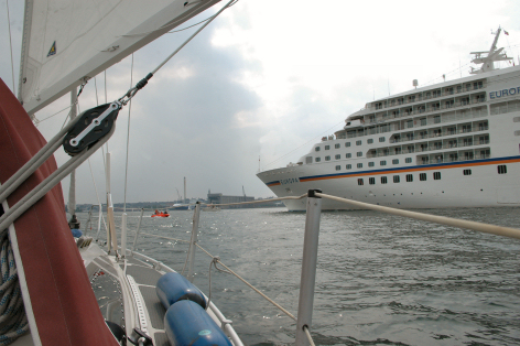 Nach dem Frühstück haben wir in der Zeitung gelesen das das Kreuzfahrschiff EUROPA heute nach Flensburg kommt. Nätürlich können wir unter solchen Gegebenheiten nicht die Förde verlassen. Wir segeln der Europa entgegen und begleiten diese nach Flensburg. Um 23:00 Uhr gab es ein Prachtfeuerwerk, welches wir von der NeRo aus in erster Reihe bestaunen durften.