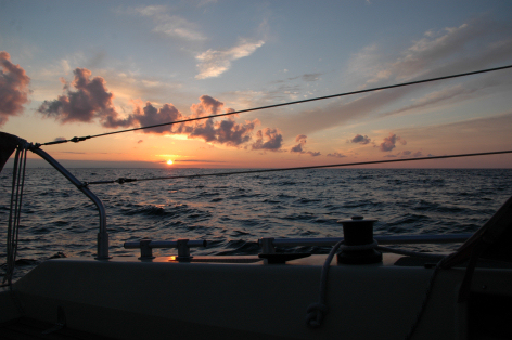 Großenbrode Ankerplatz - Timmendorf auf der Insel Poel - 03:30 Uhr der Wind hat auf Ost gedreht und zugenommen. An ein weiter schlafen war, bei dem geschaukel, nicht mehr zu denken. Anker auf Segel hoch und weiter Richtung Insel Poel. Ein toller Sonnenaufgang entschädigt uns. |