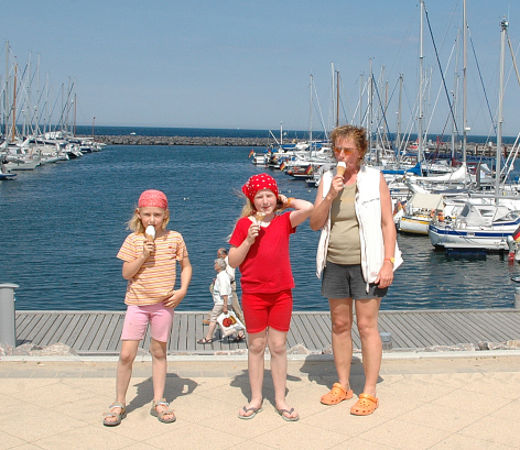 Mit der Hotel eigenen Fähre ging es nach Warnemünde. Wir schlenderten durch den Ort, erfrischten uns mit kalten Getränken und Eis. Nachmittags setzen wir dann wieder mit der Fähre zum Hafen über. Die Kinder stürmten zum Strand. Abend gingen Claudia und ich in das Hotel und sahen das Fußballspiel Deutschland Italien. |