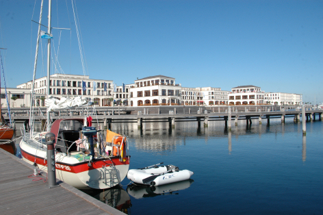 8:40 Uhr lies der Wind nach und unter Motor machten wir um 19:41 in dem neuen Hafen Hohe Düne in Warnemünde fest. Der riesige edele Hafen war nur zu 10% belegt. Einen kompletten Steg hatten wir fast für uns. Auch die zugehörige Hotelanlage lies keine Wünsche offen. Leider alles total unterbelegt. So eine Verschwendung, nur um sich für eine Olympiade zu bewerben, was dann leider auch nicht von Erfolg gekrönt war. |