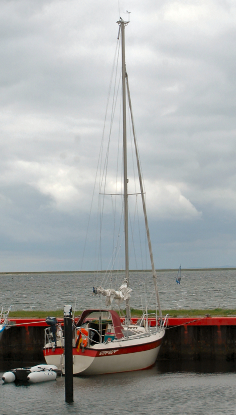 Marstal - Sonderborg Der Wetterbericht für die nächsten Tage machte uns zu bedenken. Sollen wir nördlich um Als oder auf den direkten Weg zurück in die Förde? Ronja und Nela begleiteten mich beim Brötchen holen. 11:00 Uhr stand die Entscheidung fest, es soll auf den direketen Weg nach Sonderborg gehen. 11:35 Uhr verlassen wir Marstal. Hoch am Wind ging es Richtung kleinen Belt. Ich bin froh das die Kinder schlafen. Der Wind drehte immer weiter nach West. Bei der Untiefentonne bei Gammel Pöl machten wir den Motor an. Gegen den hohen Seegang kamen wir nur schleppend voran. Müde erreichten wir dann glücklich um 19:26 Uhr den Yachthafen von Sonderborg. Heute ging es früh ins Bett. Daten des Tages Tagesweg über Grund 30,9 Seemeilen Höchstgeschwindigkeit 7,6 Knoten Motorzeit 2 Stunden 49 Minuten |