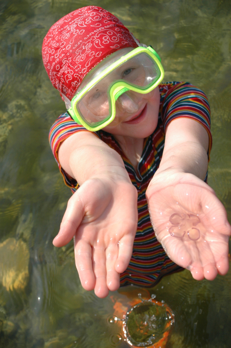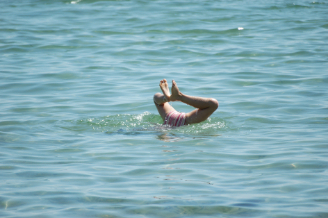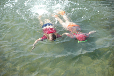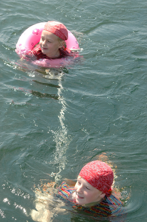Schnell hatten die Kinder ihre Badesachen an und schon dackelten beide ab. Spät Abends konnte nur ein versprochenes Eis die Kinder aus dem Wasser zu bekommen.