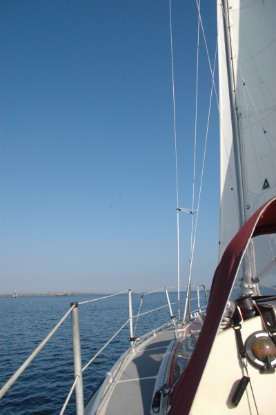 Es ist Sonntag und ich schlief wieder aus. Heute geht es nach Hause, zuvor muss ich aber noch ein wenig segeln. Um 09:23 Uhr geht es los. Schnell war die Genua ausgerollt und kurz darauf stand auch das Groß. Das Thermometer zeigt nun 9 Grad an, gegenüber von gestern recht kuschelig warm. 11:00 Uhr wird gewendet und es geht zurück. Da der Wind aus SW kommt und auch heute recht schwach weht nehme ich die Segel runter und tuckere unter Motor zurück nach Wismar. 12:26 Uhr lag die NeRo wieder festgebunden am Steg. Nun geht es endgültig nach Hause..