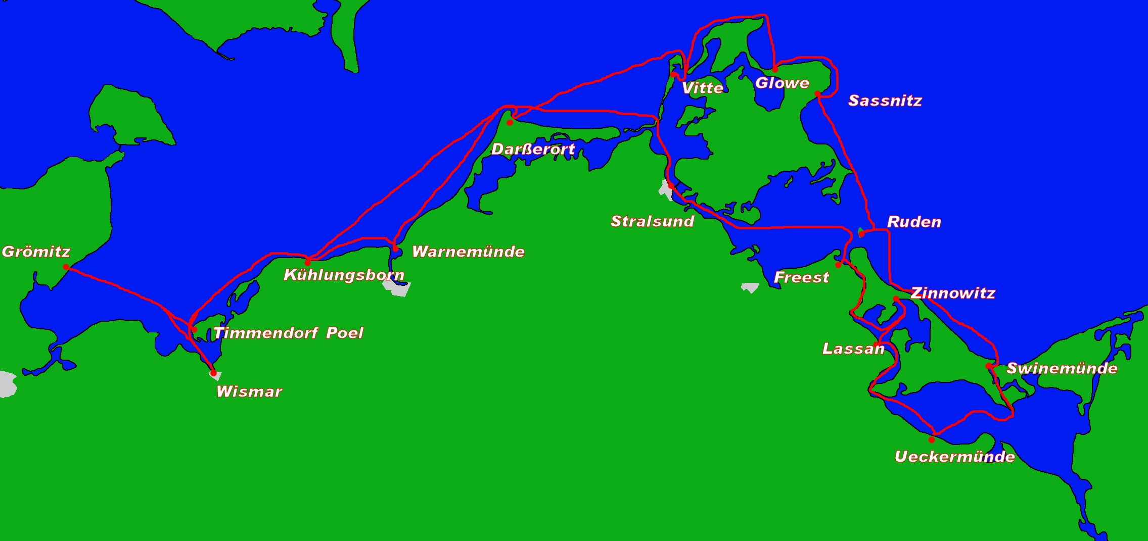 Aufgestanden sind wir so gegen 0830 Uhr. Heute hat der Wind auf West gedreht (ich hoffe das es so bleibt habe keinen Bock auf einen weitern Motortag). Unser Ziel ist der Nothafen Darßer Ort und ich denke wenn wir 1200 Uhr den Hafen verlassen sollten wir spätestens um 2200 Uhr dort vor Anker liegen. Grund für das Ankern ist das der Hafen versandet ist und im Herbst (nach 2 Jahren) ausgebagert wird, was natürlich zu spät für uns ist.
