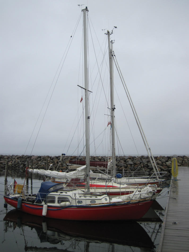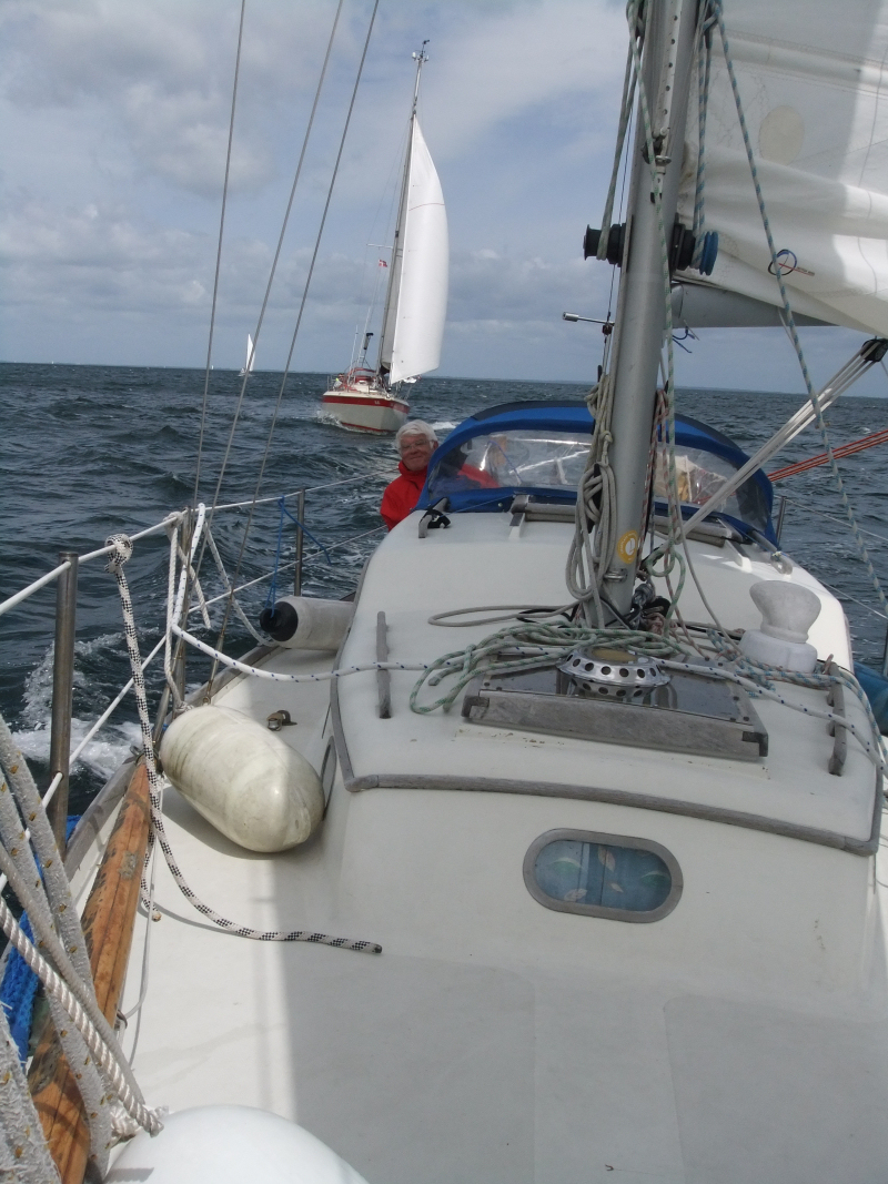 Damp - Bagö Eigentlich wollte ich heute in den Sonnenaufgang segeln, aber leider spielte das Wetter nicht mit. Neuer Auslauftermin 08:00 Uhr Die Wolken hängen tief als ich um 0750 Uhr den Motor startete, die Leinen loswarf und aus der Box fuhr. Thomas und Reinhard, mit der Jona, wollen mich, nach Bagö (Dänemark), begleiten. Der Wind wehte, mit 5 Beauforts, aus Süd. Die Wellenhöhe betrug bis zu 2 Meter. 0805 Uhr stand das Großsegel und los geht es. Es hat angefangen zu regnen. 0910 Uhr passieren Schleimünde. sehr schnell machten wir Boden gut, Richtung Norden. Thomas sein Kurs ging auf Äero zu, mein Kurs führte mich direkt an Als vorbei. Um 1020 Uhr konnte ich die Jona nicht mehr sehen. Ab und zu versuchte Thomas mich per Funk zu erreichen, habe mit 2 Funkgeräten versucht zu antworten, aber konnte mich nicht aufnehmen. Da mein Autopilot, so platt vor dem Wind, hoffnungslos überfordert war, saß ich permanent an der Pinne. Gegen 1100 Uhr hörte der Regen auf. So gegen 1350 Uhr sah ich die Jona wieder, sie war etwa 2 Seemeile voraus. 1640 Uhr erreichten wir den Hafen von Bagö. Nach einem schwierigen Anlegemanöver, durch den starken Seitenwind, lagen wir um 1652 Uhr fest im Hafen. Eigentlich ein schöner Hafen, wenn das regnerische Wetter nicht wäre. Landausflüge fallen somit aus, werde ich aber ein adern mal nachholen. Daten des Tages |